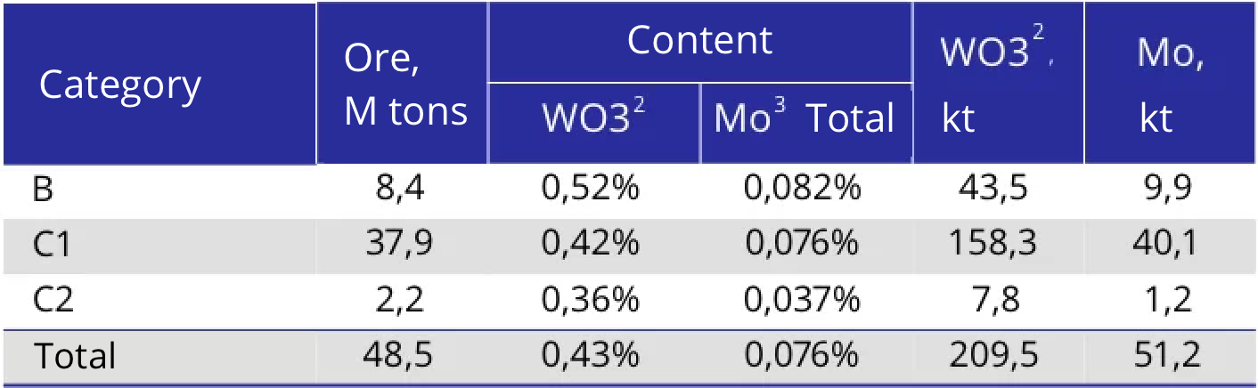 Mineral base of Tyrnyauz deposit