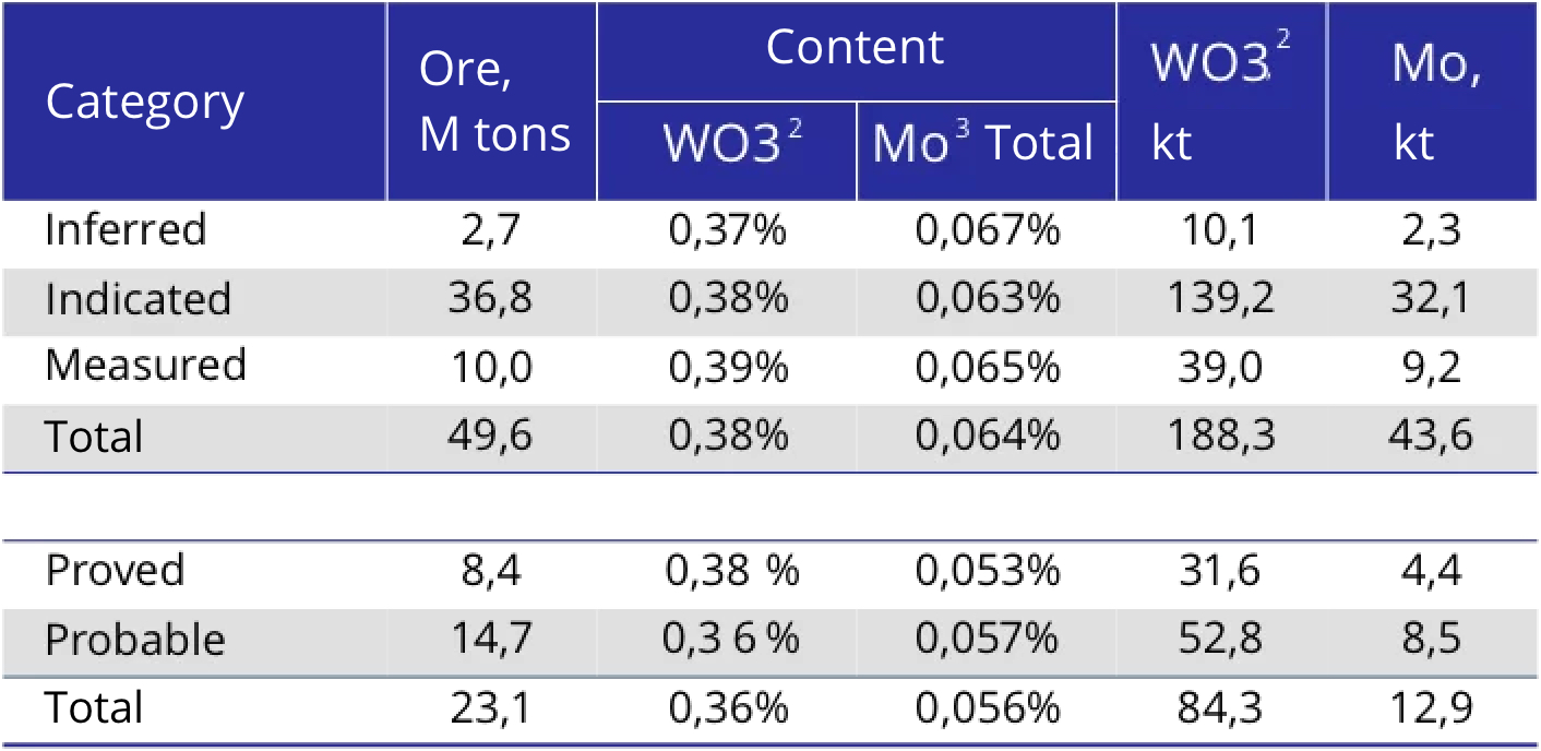 Tyrnyauz deposit is of contact-metasomatic type. The deposit area is composed of Devonian volcanic-sedimentary rocks. The ores are confined to a series of steeply dipping skarn basins of the northwestern strike with molybdenite and scheelite mineralization.